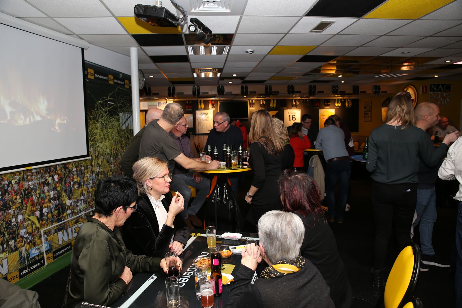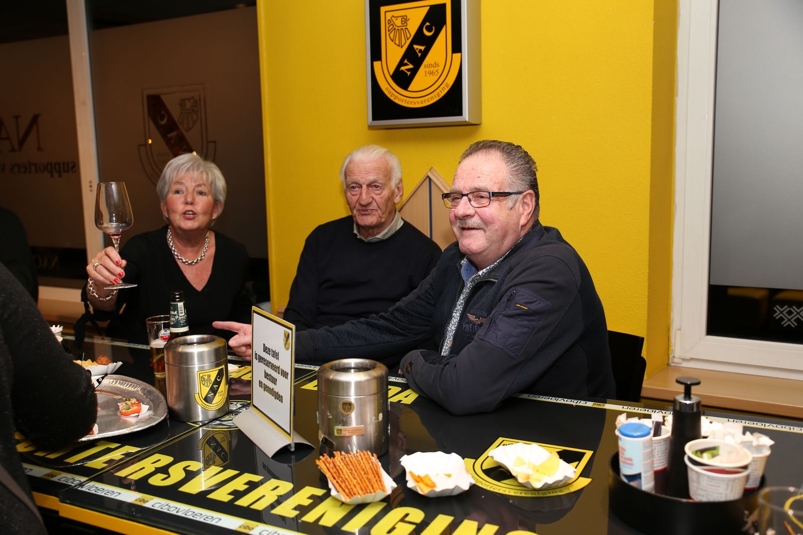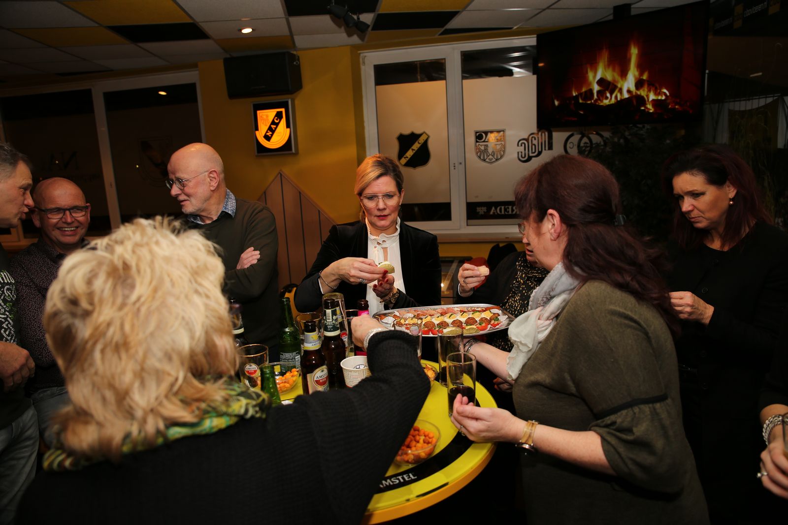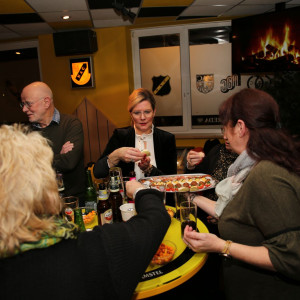Dat iedereen een gelukkig en gezond 2019 mag beleven. Het bestuur van de Supportersvereniging spreekt deze wensen uit voor degene die aanwezig waren in het supportershome voor de Nieuwjaarsborrel. Uiteraard geldt dit voor iedereen en hopelijk wordt het sportief ook een prima jaar. Na de handjes schudden, werd het tijd om het over NAC te hebben en uiteraard hoort daar een drankje en een lekker hapje bij. Marieta Snelders had haar best gedaan met de hapjes,voor ieder wat wils, en daar werd gretig gebruik van gemaakt uiteraard. Met twee uitstekende draaiende DJ's stond de avond ook garant voor een gezellig muziekje op de achtergrond. Er waren ook die dartspijltjes probeerde te gooien om te laten zien dat niet alleen van Gerwen dat kan ! Het was een gezellig avondje en we moeten dit volgend jaar maar gewoon weer continueren.