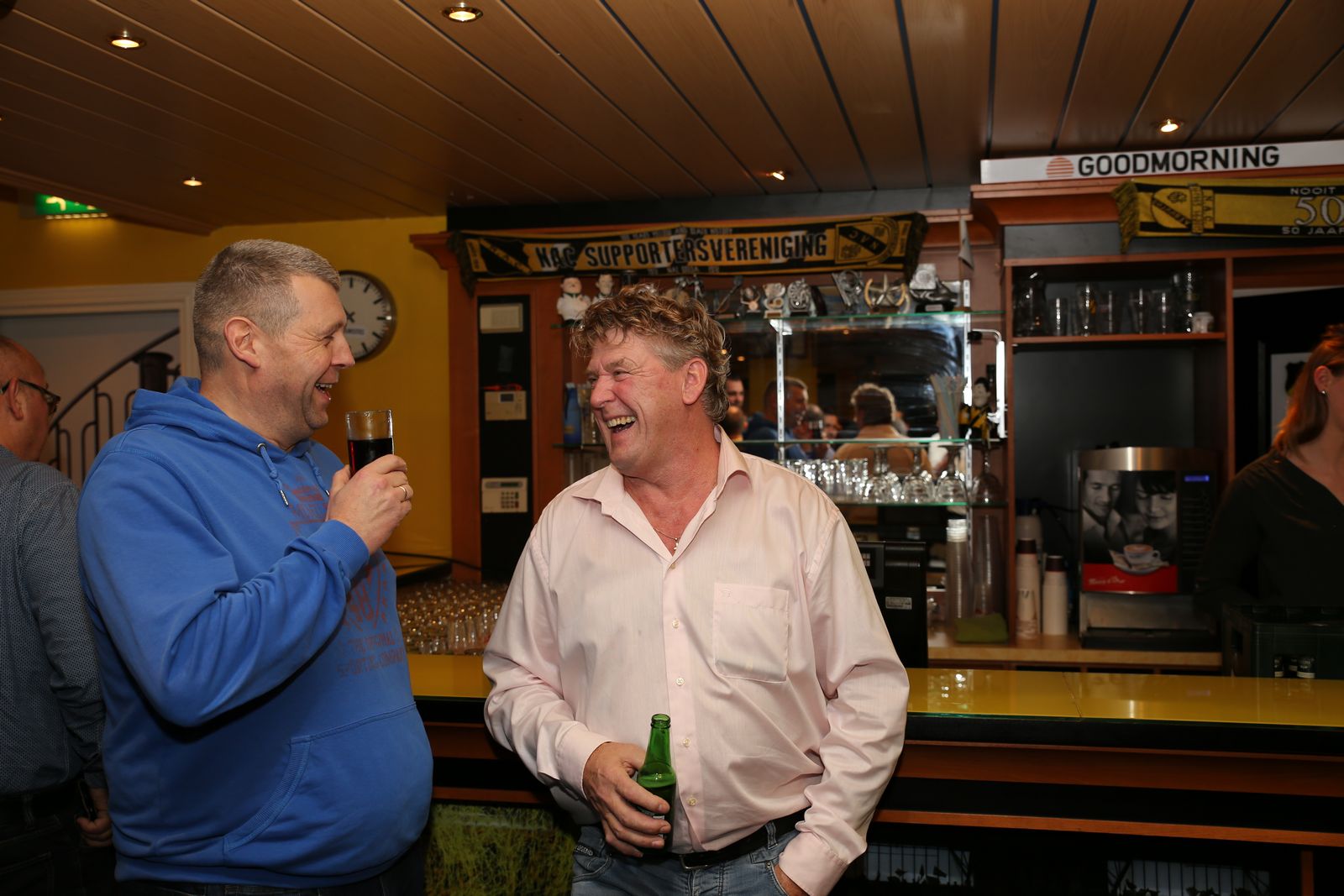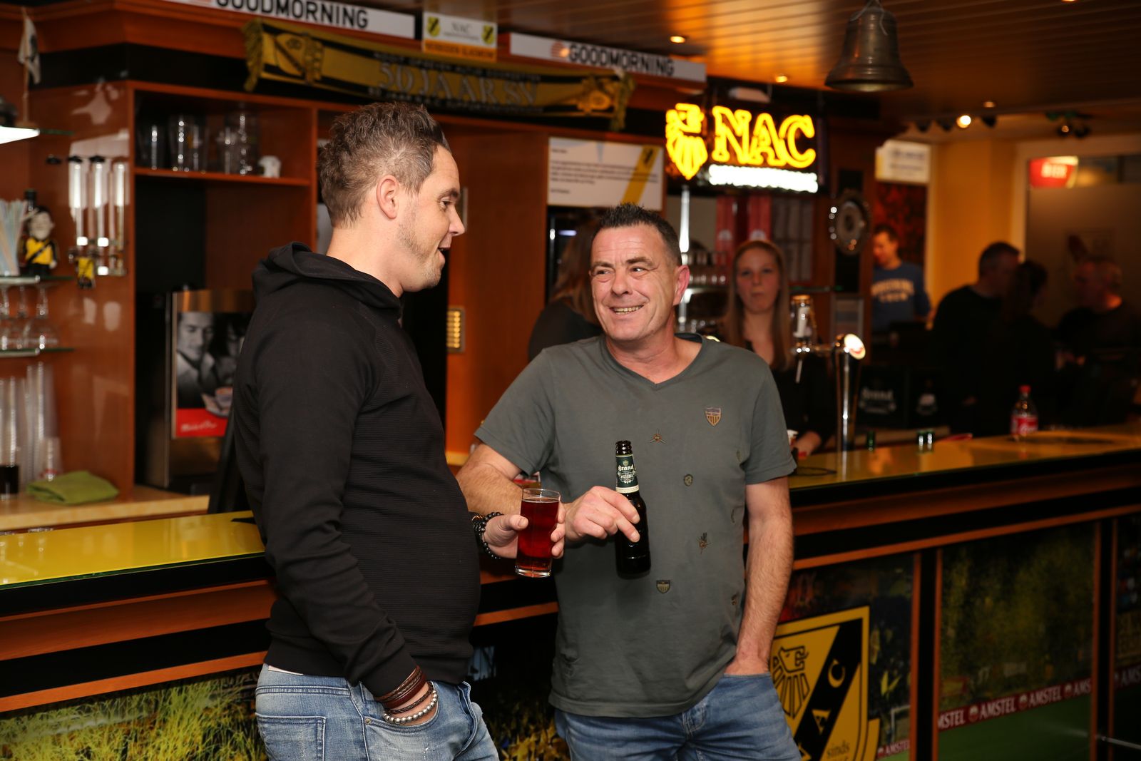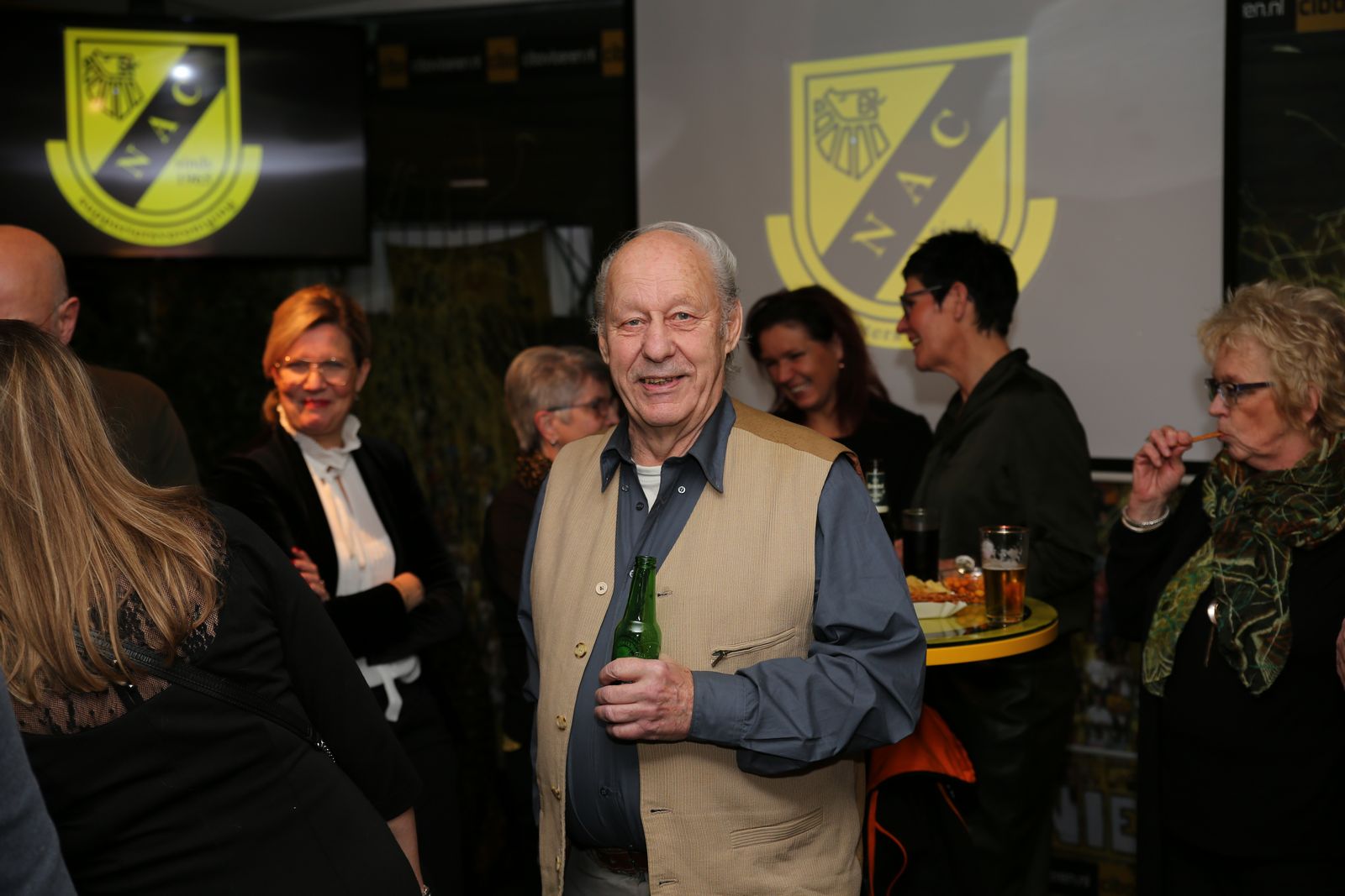 Dat iedereen een gelukkig en gezond 2019 mag beleven. Het bestuur van de Supportersvereniging spreekt deze wensen uit voor degene die aanwezig waren in het supportershome voor de Nieuwjaarsborrel. Uiteraard geldt dit voor iedereen en hopelijk wordt het sportief ook een prima jaar. Na de handjes schudden, werd het tijd om het over NAC te hebben en uiteraard hoort daar een drankje en een lekker hapje bij. Marieta Snelders had haar best gedaan met de hapjes,voor ieder wat wils, en daar werd gretig gebruik van gemaakt uiteraard. Met twee uitstekende draaiende DJ's stond de avond ook garant voor een gezellig muziekje op de achtergrond. Er waren ook die dartspijltjes probeerde te gooien om te laten zien dat niet alleen van Gerwen dat kan ! Het was een gezellig avondje en we moeten dit volgend jaar maar gewoon weer continueren.