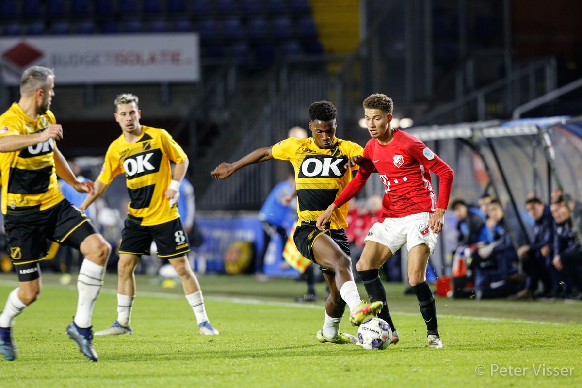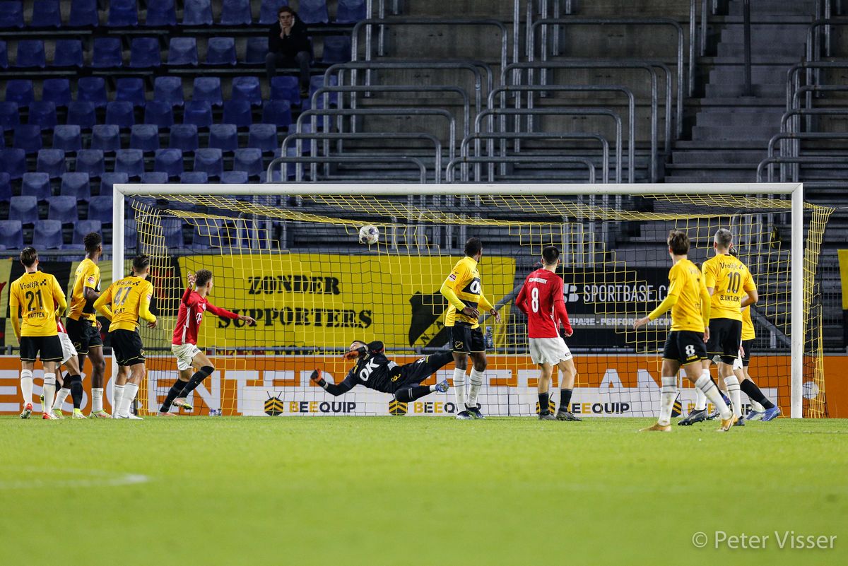 Jong Utrecht was de tegenstander. Een troosteloze lege Rat Verlegh stadion. Hier putten onze jongens geen moed uit waarschijnlijk. NAC probeerde de muur van Utrecht te slopen door voortdurend in de aanval te zijn. Maar als het moment daar is raken we de bal vaak snel weer kwijt. Het was dus voor de kijkers thuis niet om aan te zien. Er was een opmerkelijke scrimmage waaruit mogelijk wel een doelpunt had kunnen vallen. De keeper en ook regelmatig de benen van de tegenstander weerhielden NAC van een openingsgoal af.