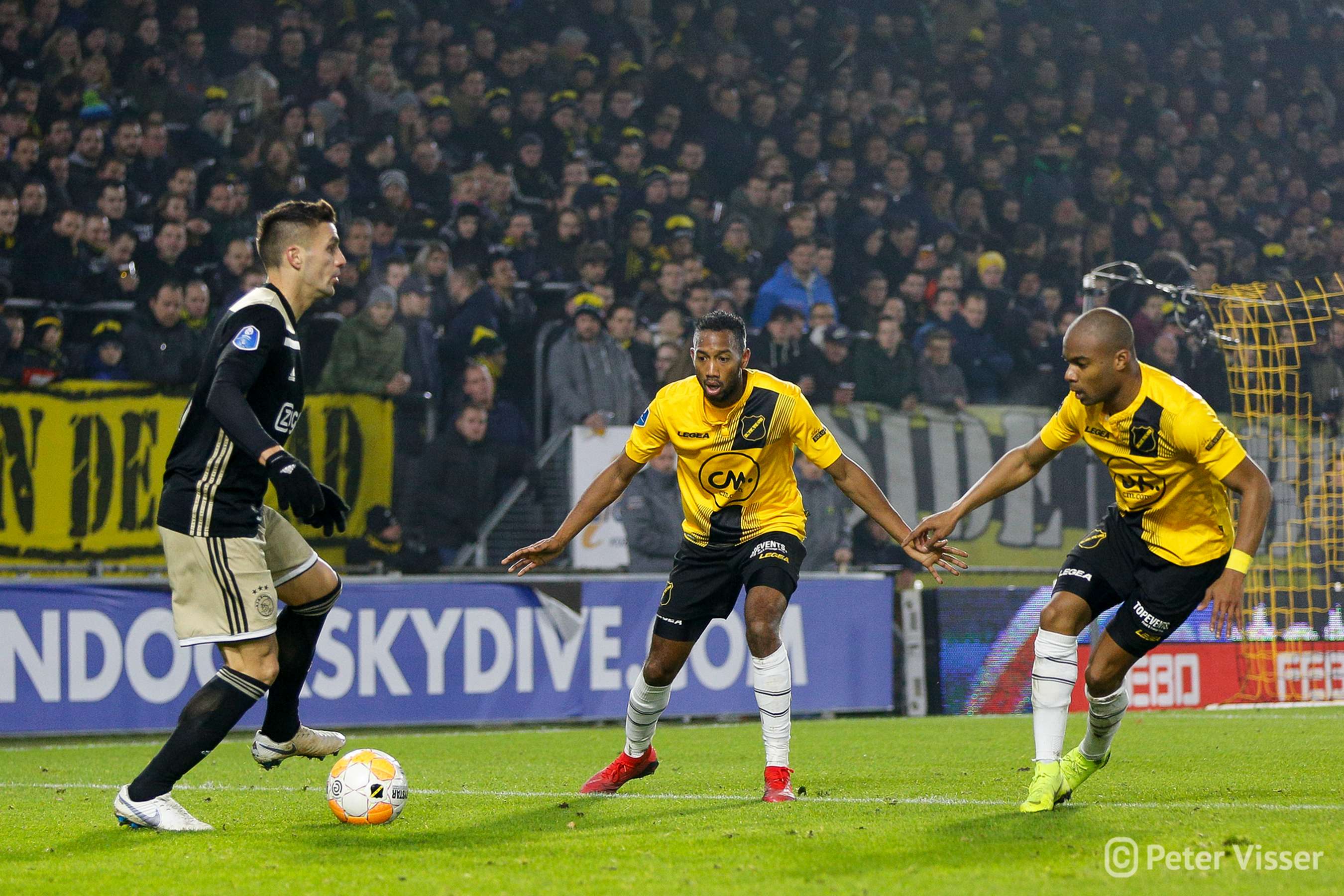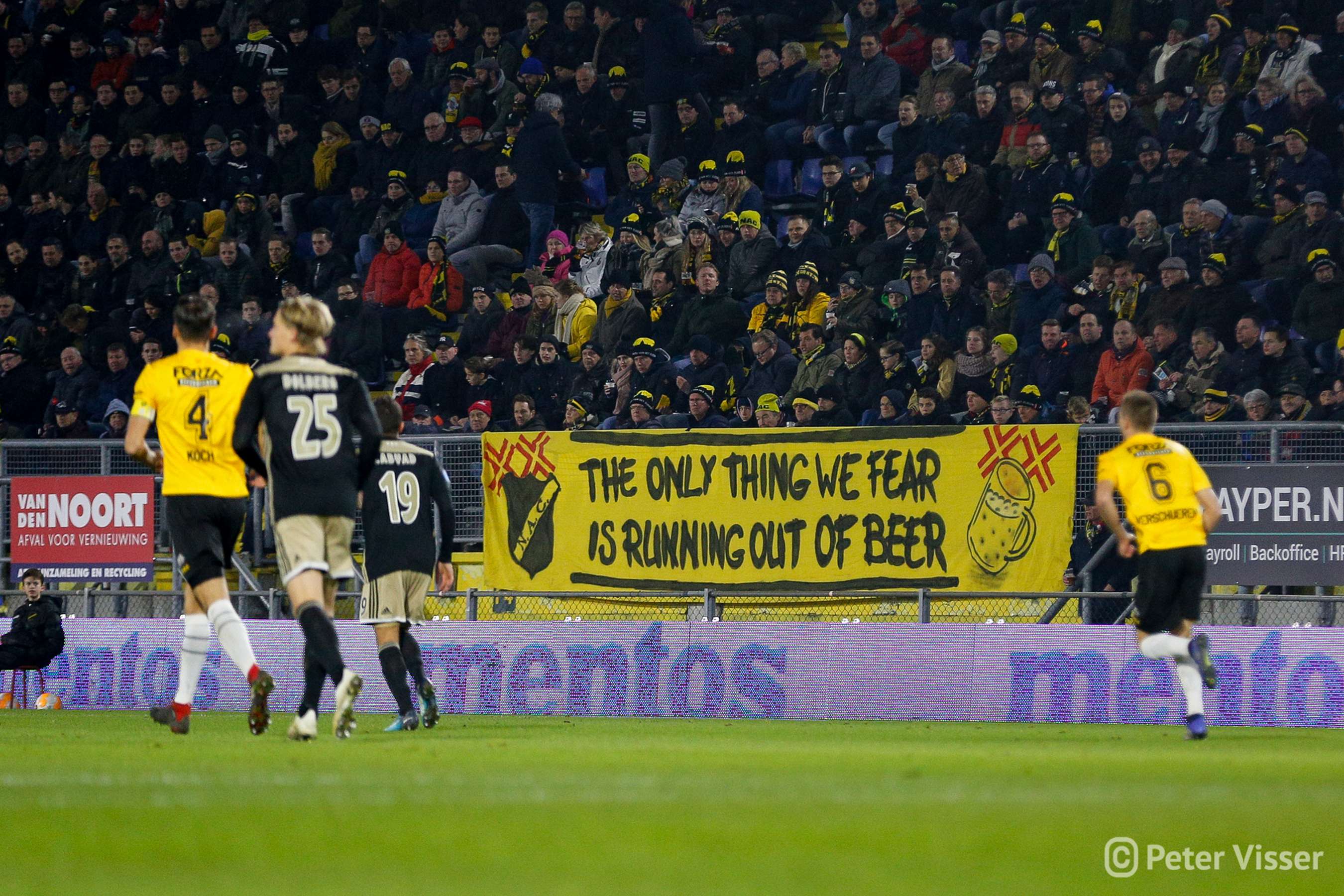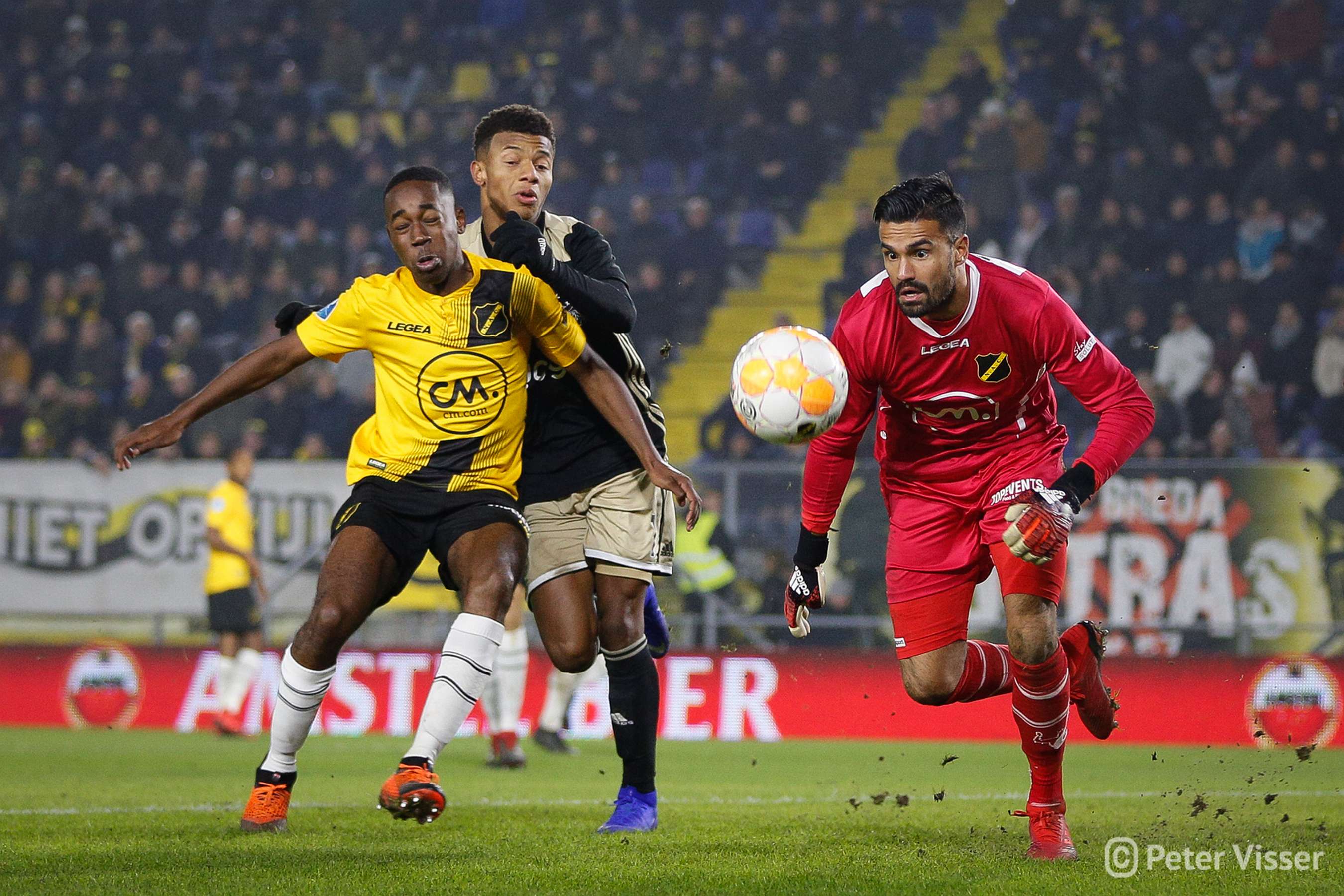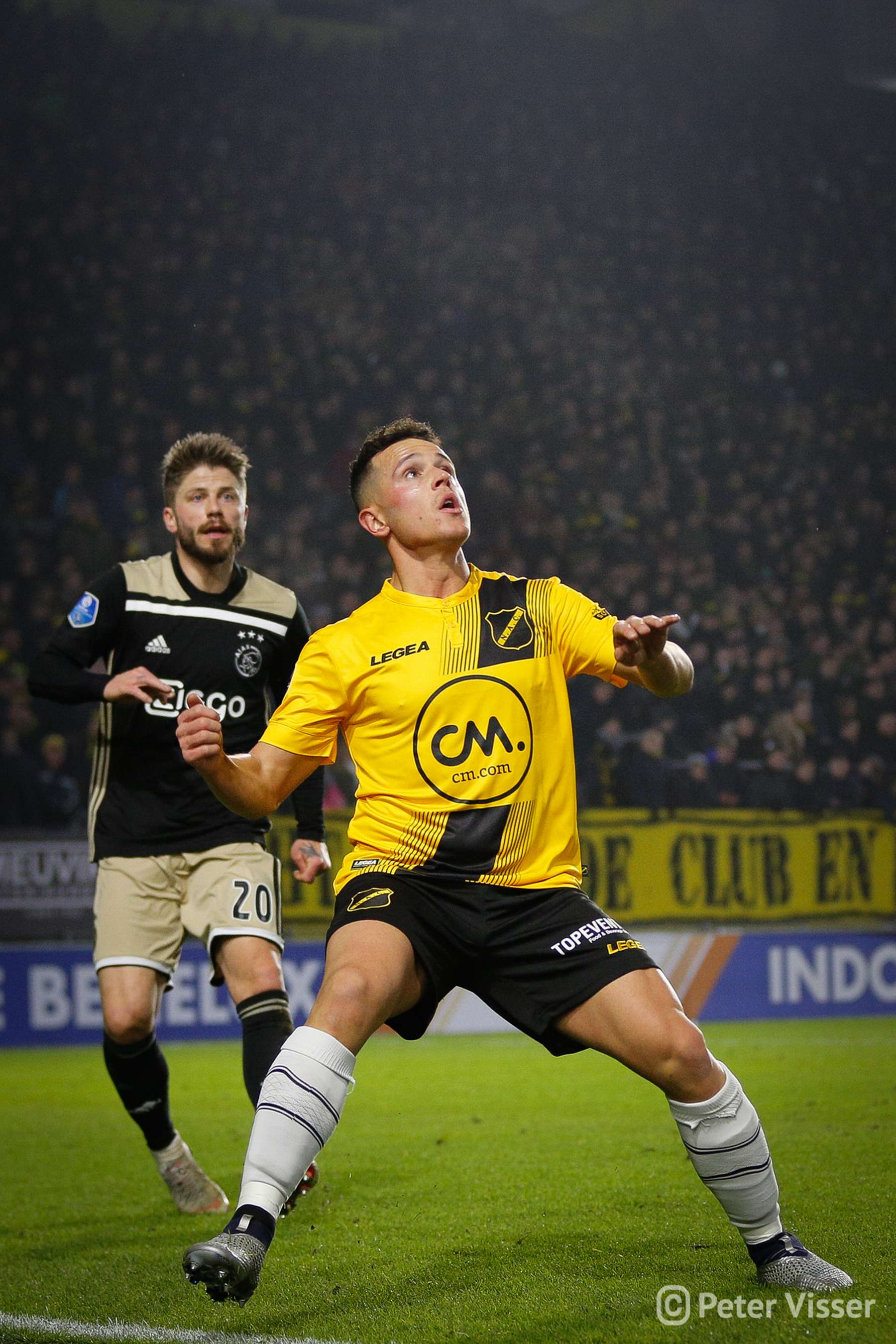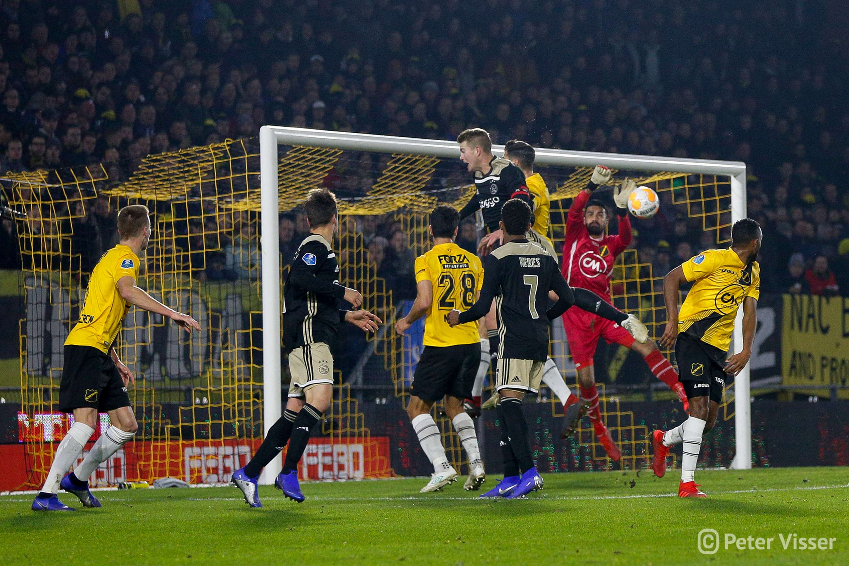 Ajax, dus. De sfeer in het volgepakte Rat Verlegh stadion was gelaten. Hoe gaan we partij bieden tegen de Amsterdammers die momenteel de tweede plek bezitten. Het antwoord was verdedigen, verdedigen, verdedigen en nog eens verdedigen. Sommige supporters zagen een solide NAC, anderen een laffe vertoning. Met heel af en toe een speldenprik werd het in ieder geval geen spetterende eerste helft van NAC zijde. Een eerste helft die 5 minuten voor het einde werd afgesloten met een 0-1 achterstand. Uit een corner zat van Leer er compleet naast en werd de bal binnengelopen door de debuterende Mashart. En ja, die hoort bij NAC. Jammer voor de deze jongen die overigens wel een prima wedstrijd speelde.