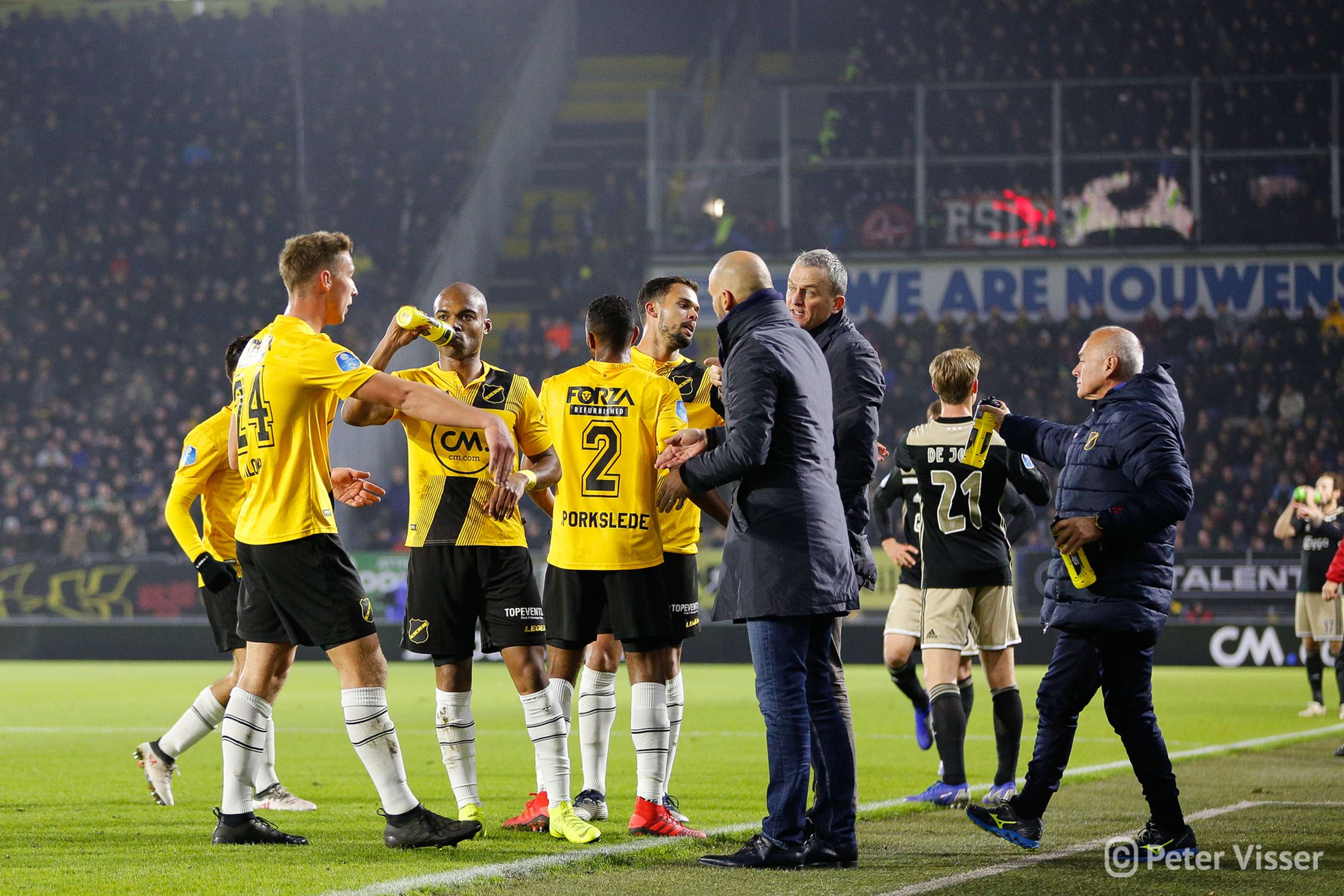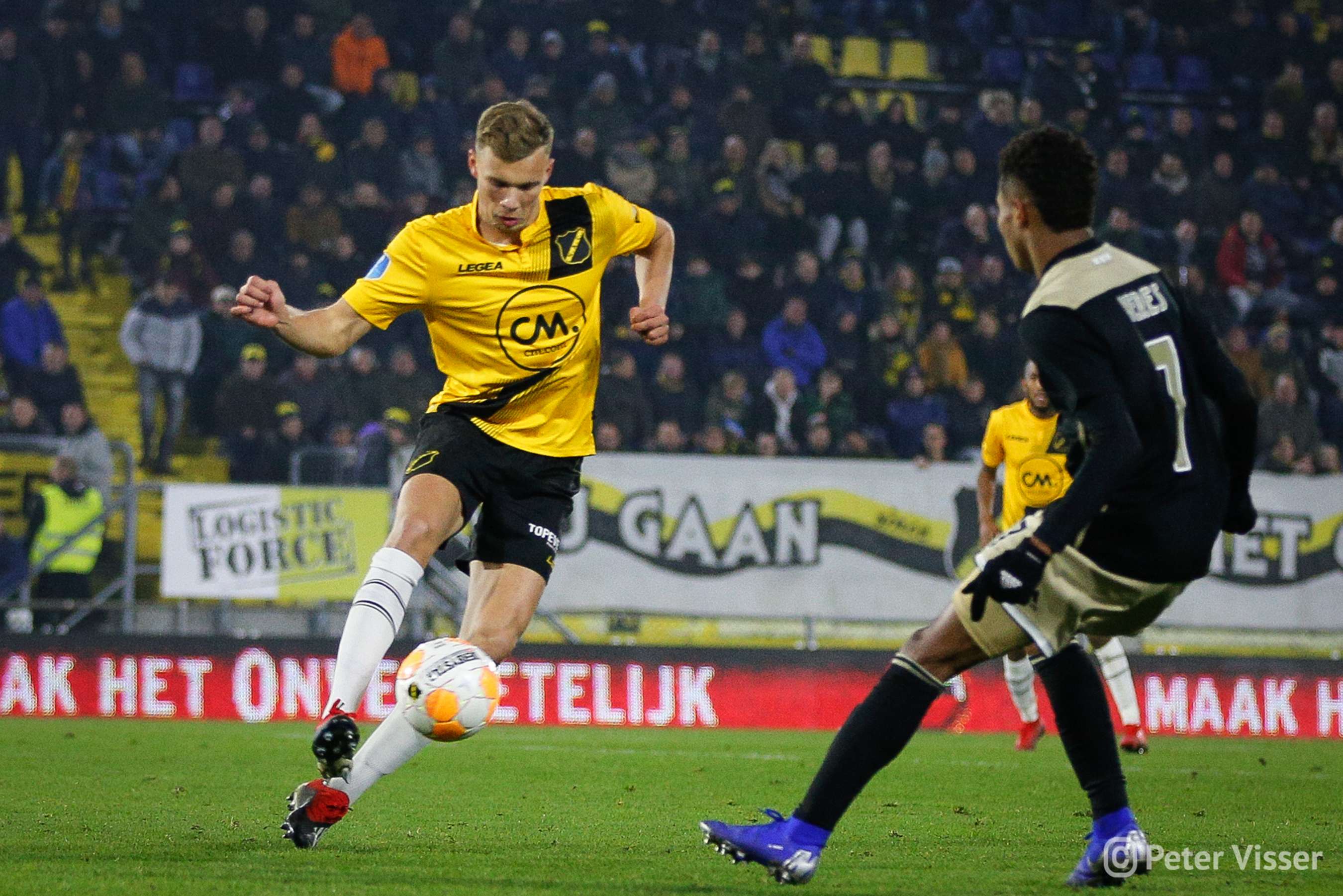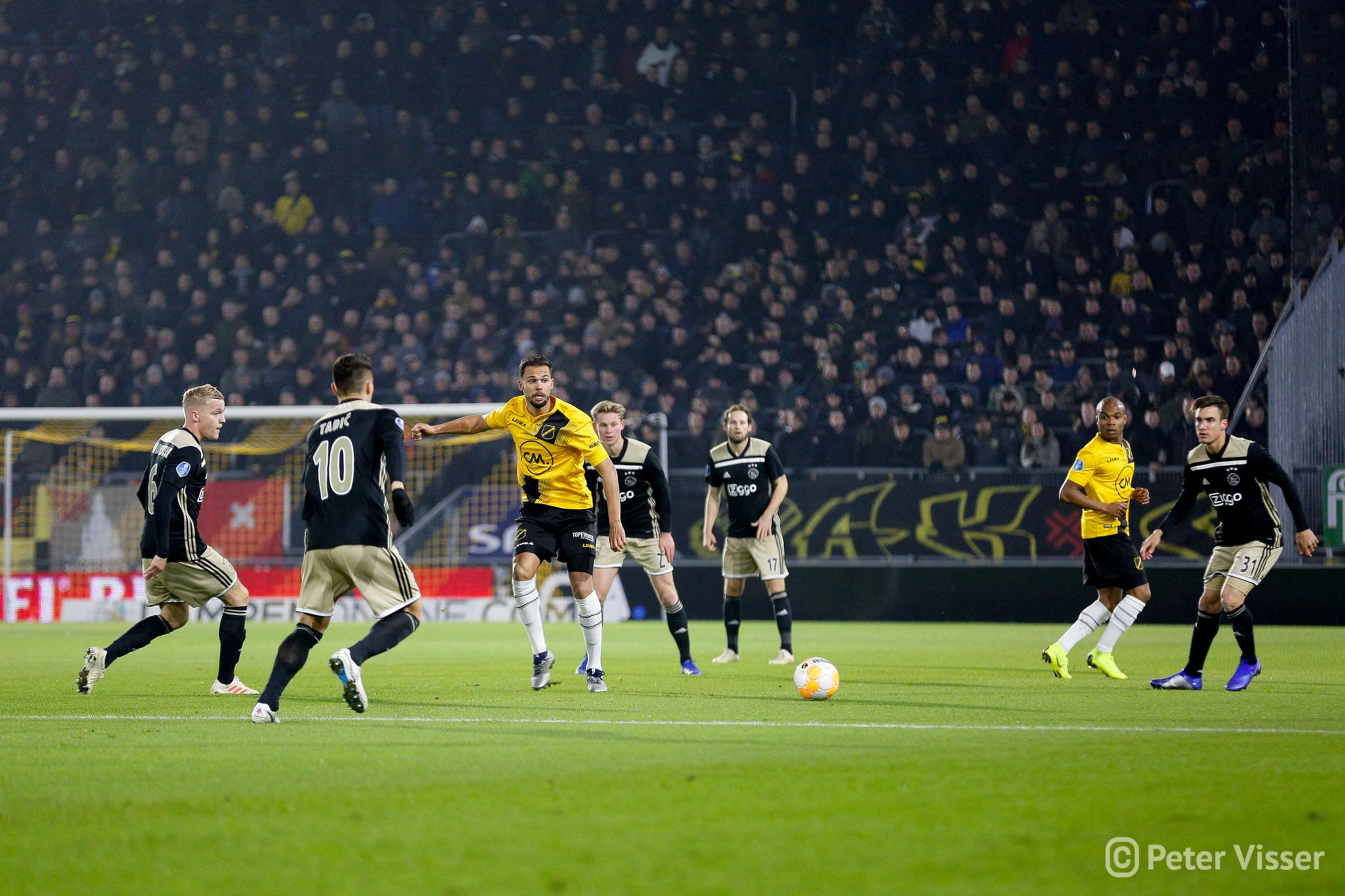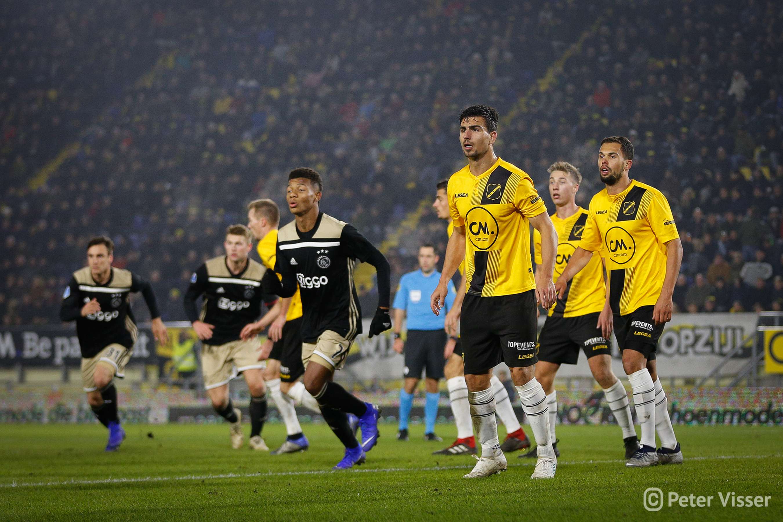 Ajax, dus. De sfeer in het volgepakte Rat Verlegh stadion was gelaten. Hoe gaan we partij bieden tegen de Amsterdammers die momenteel de tweede plek bezitten. Het antwoord was verdedigen, verdedigen, verdedigen en nog eens verdedigen. Sommige supporters zagen een solide NAC, anderen een laffe vertoning. Met heel af en toe een speldenprik werd het in ieder geval geen spetterende eerste helft van NAC zijde. Een eerste helft die 5 minuten voor het einde werd afgesloten met een 0-1 achterstand. Uit een corner zat van Leer er compleet naast en werd de bal binnengelopen door de debuterende Mashart. En ja, die hoort bij NAC. Jammer voor de deze jongen die overigens wel een prima wedstrijd speelde.