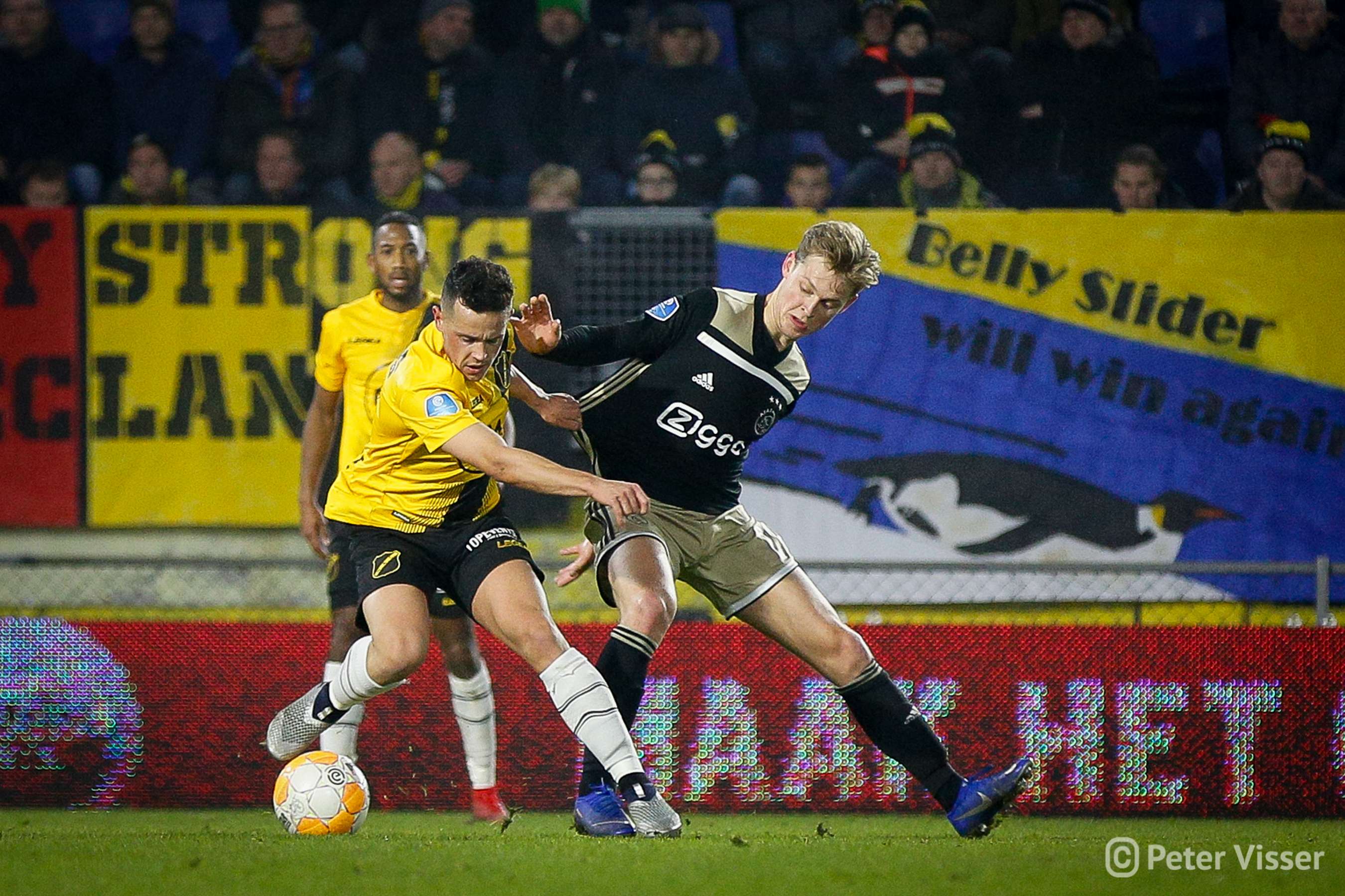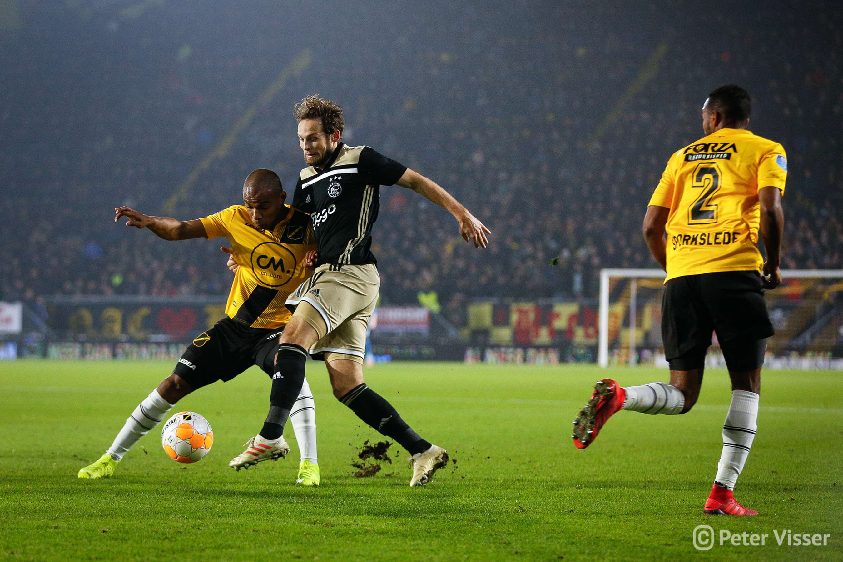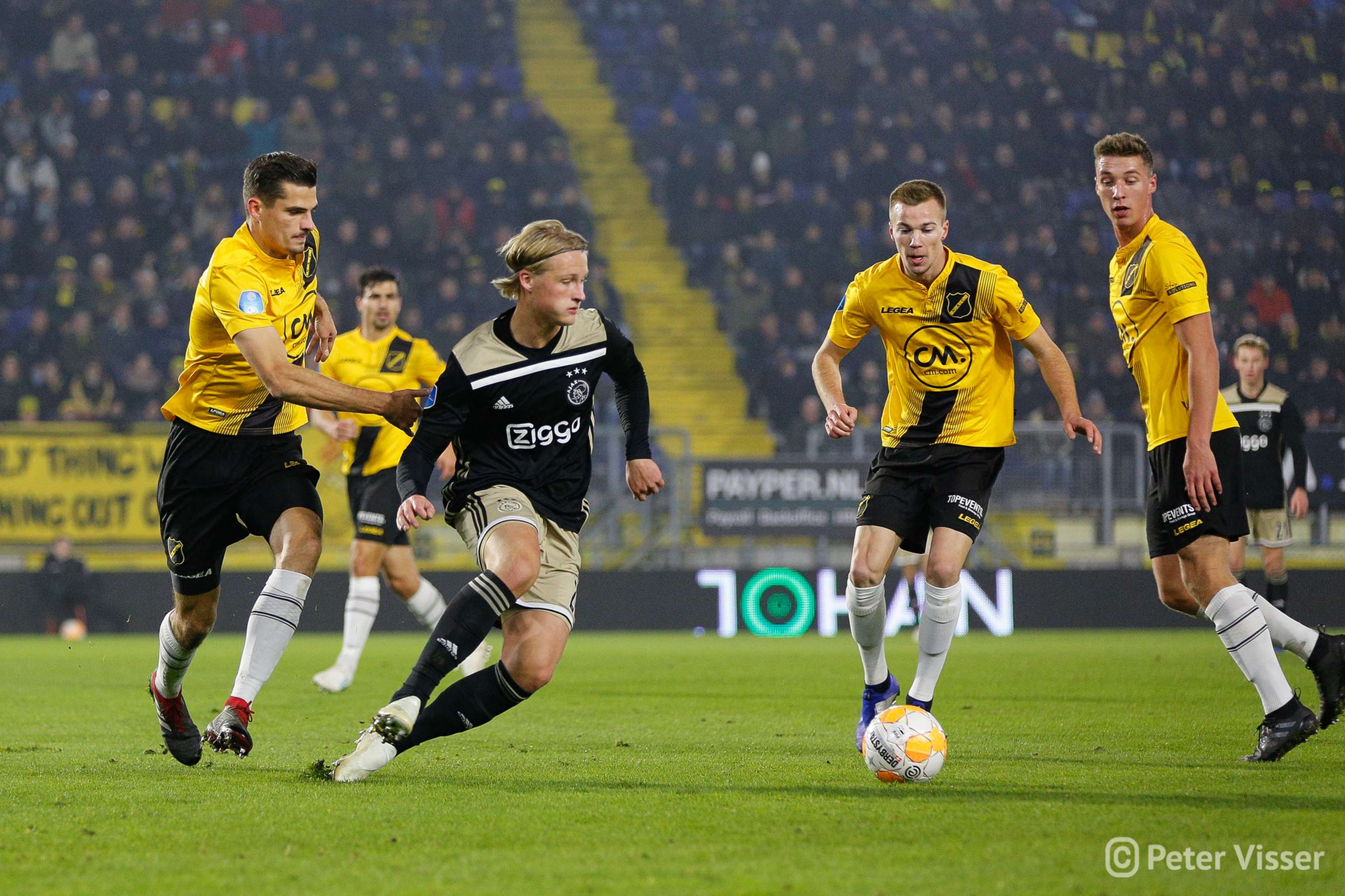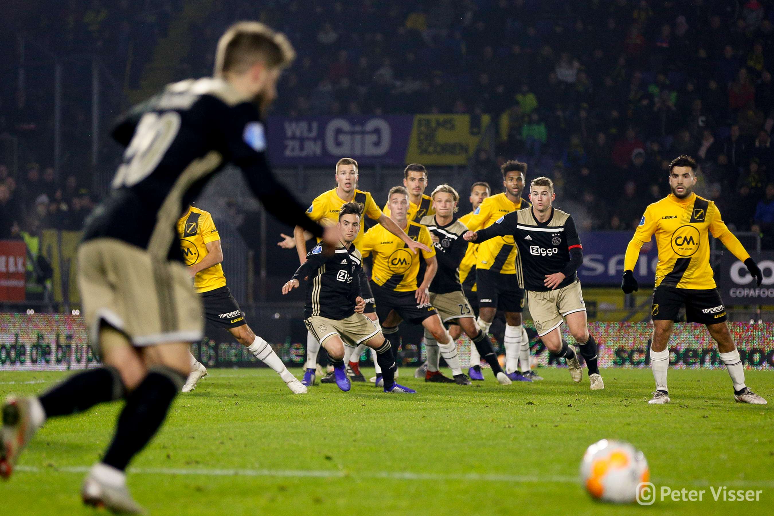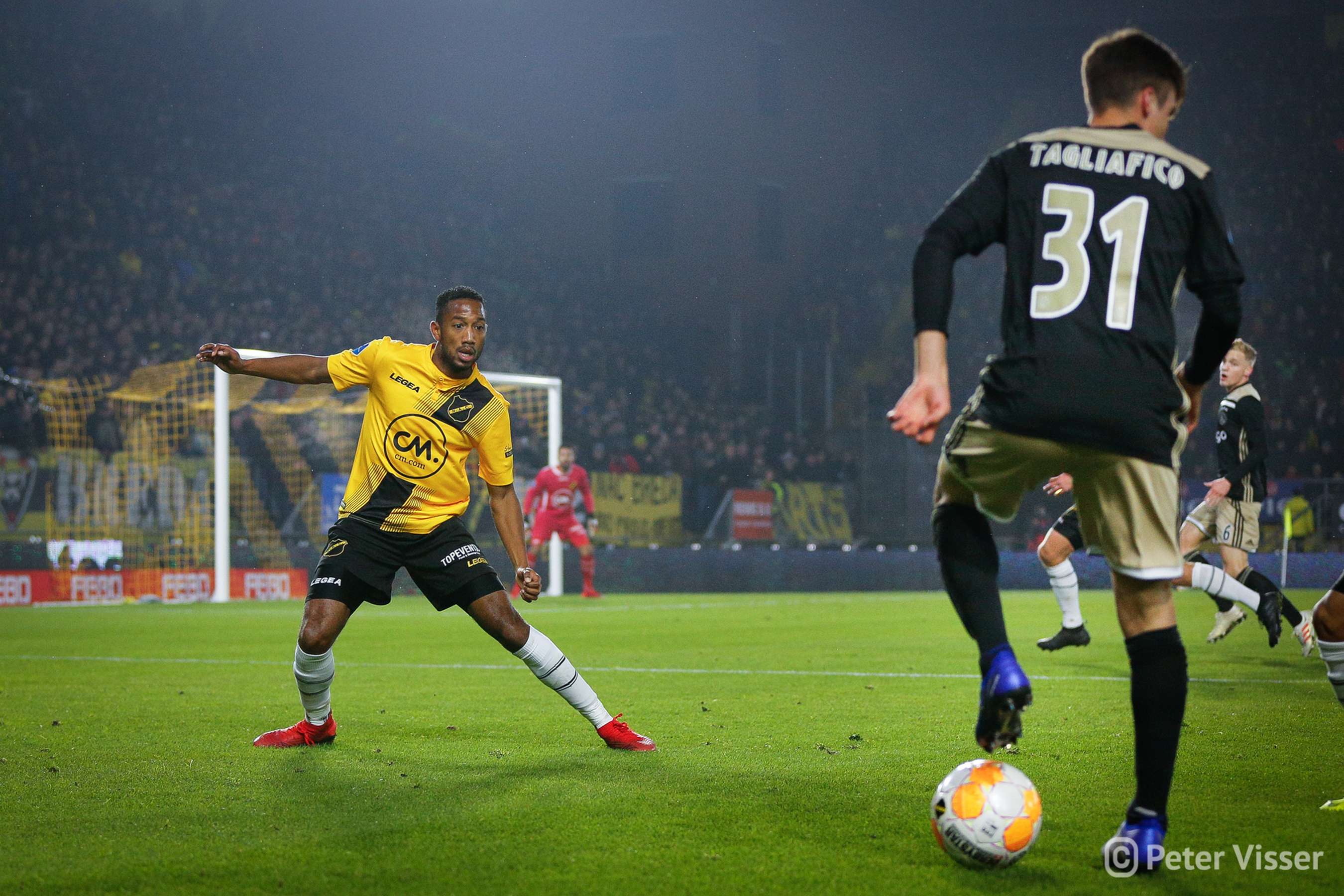 Ajax, dus. De sfeer in het volgepakte Rat Verlegh stadion was gelaten. Hoe gaan we partij bieden tegen de Amsterdammers die momenteel de tweede plek bezitten. Het antwoord was verdedigen, verdedigen, verdedigen en nog eens verdedigen. Sommige supporters zagen een solide NAC, anderen een laffe vertoning. Met heel af en toe een speldenprik werd het in ieder geval geen spetterende eerste helft van NAC zijde. Een eerste helft die 5 minuten voor het einde werd afgesloten met een 0-1 achterstand. Uit een corner zat van Leer er compleet naast en werd de bal binnengelopen door de debuterende Mashart. En ja, die hoort bij NAC. Jammer voor de deze jongen die overigens wel een prima wedstrijd speelde.