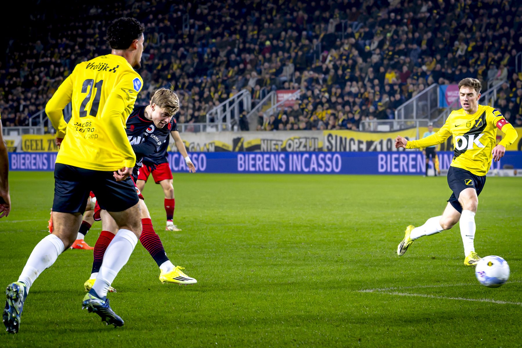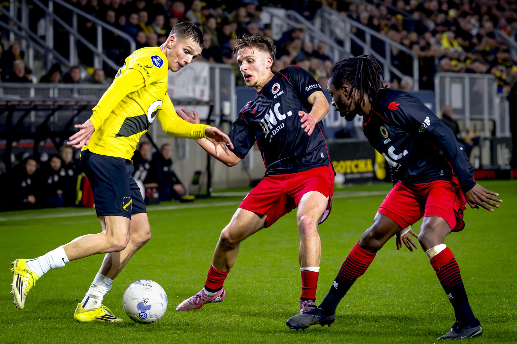 NAC kwam gevaarlijk uit de startblokken. Soumano had de openingstreffer op zijn sloffen maar door ingrijpen van de keeper werd dat voorkomen. Heel het plan van NAC kon de prullenbak in na geel en door de VAR beoordeeld als rood voor een onbesuisde actie van Hillen. NAC kroop in zijn schulp en dat was precies wat Excelsior wilden. Elkaar aankijken en niet weten wat doordekken betekent, daar maakte de tegenstander dankbaar gebruik van. De 0-1 en de 0-2 waren daar herkenbare voorbeelden van. De voorhoede probeerde nog de spanning in het stadion terug te brengen om een aansluitingstreffer te scoren, maar helaas het bleef bij pogingen.
