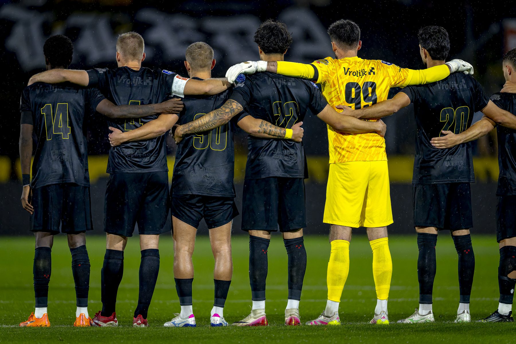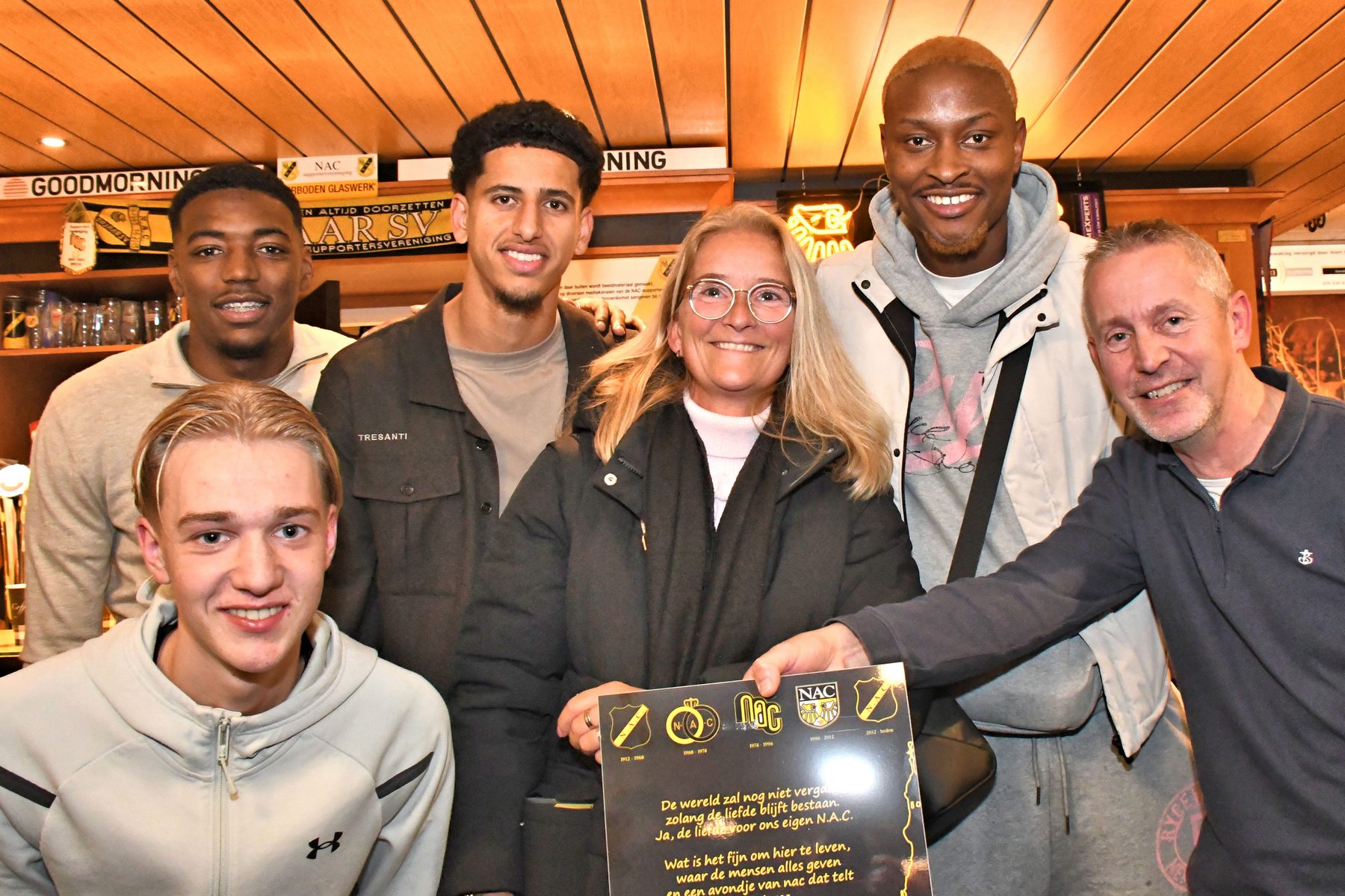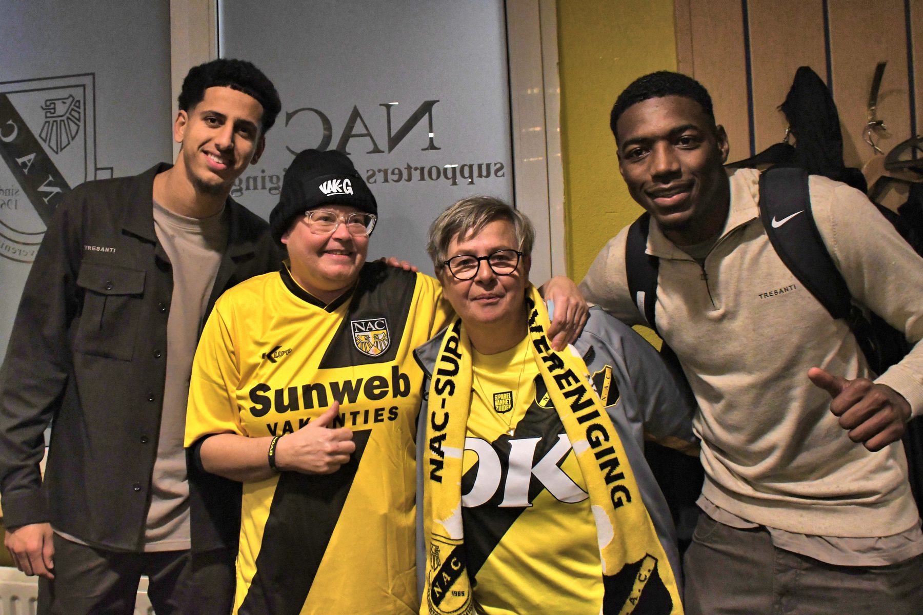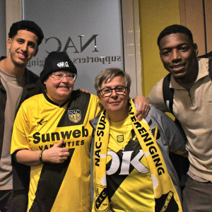 Op een vrijdagavond spelen tegen FC Groningen, dat wordt dus weer een avondje NAC voor de 20.000 supporters. Spelen in het nieuwe zwarte uitshirt was apart maar wel gaaf. Ook de “onthulling” hiervan in het bij zijn van niemand minder dan Tiësto zelf, was geweldig. Voor het begin van de wedstrijd werd 1 minuut stil gestaan bij het overlijden van oud-voorzitter van onze club, Tim Meeùs.