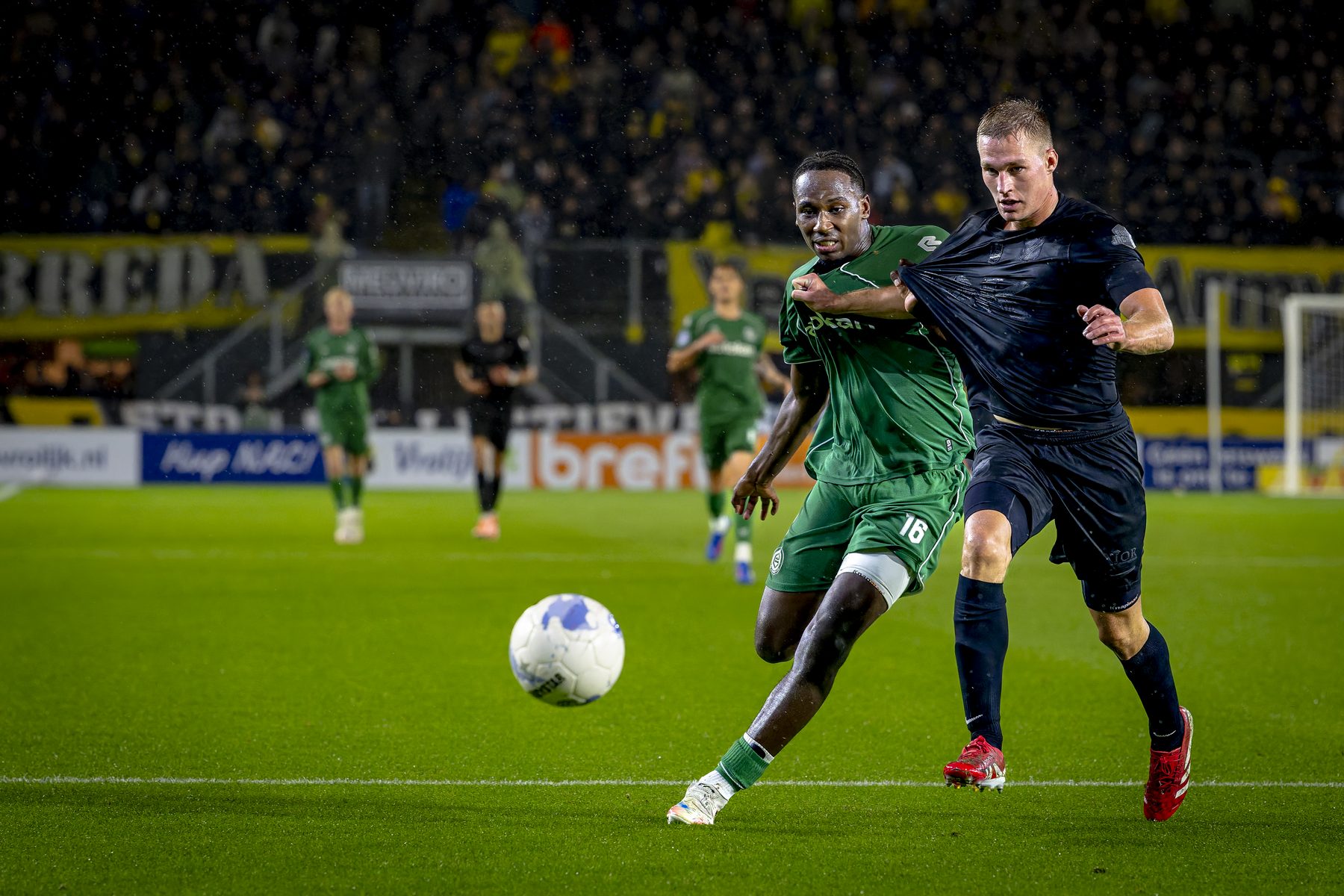 De tweede helft zag er beter uit in het begin voor NAC, maar ook Vaessen hield voorlopig zijn doel schoon. Een doeltrap zorgde voor onrust in de verdediging en daar werd knap misbruik van gemaakt door Groningen, en hieruit werd gescoord. Een stand waar de supporters zeker niet blij mee zijn. Met wisselingen in het elftal probeerde Hoefkens de stand wat positiever te maken. NAC probeerde van alles maar pas in de blessuretijd werd door Nassoh de aansluittreffer gescoord. Te laat, jammer genoeg, al had het schot van Valerius op de lat meer verdiend. Eigenlijk was de stand net als het weer, regen en nog eens regen…en dus…