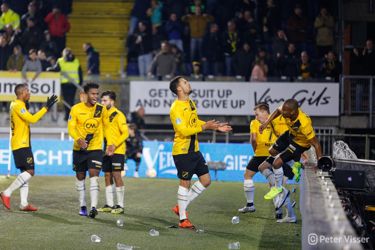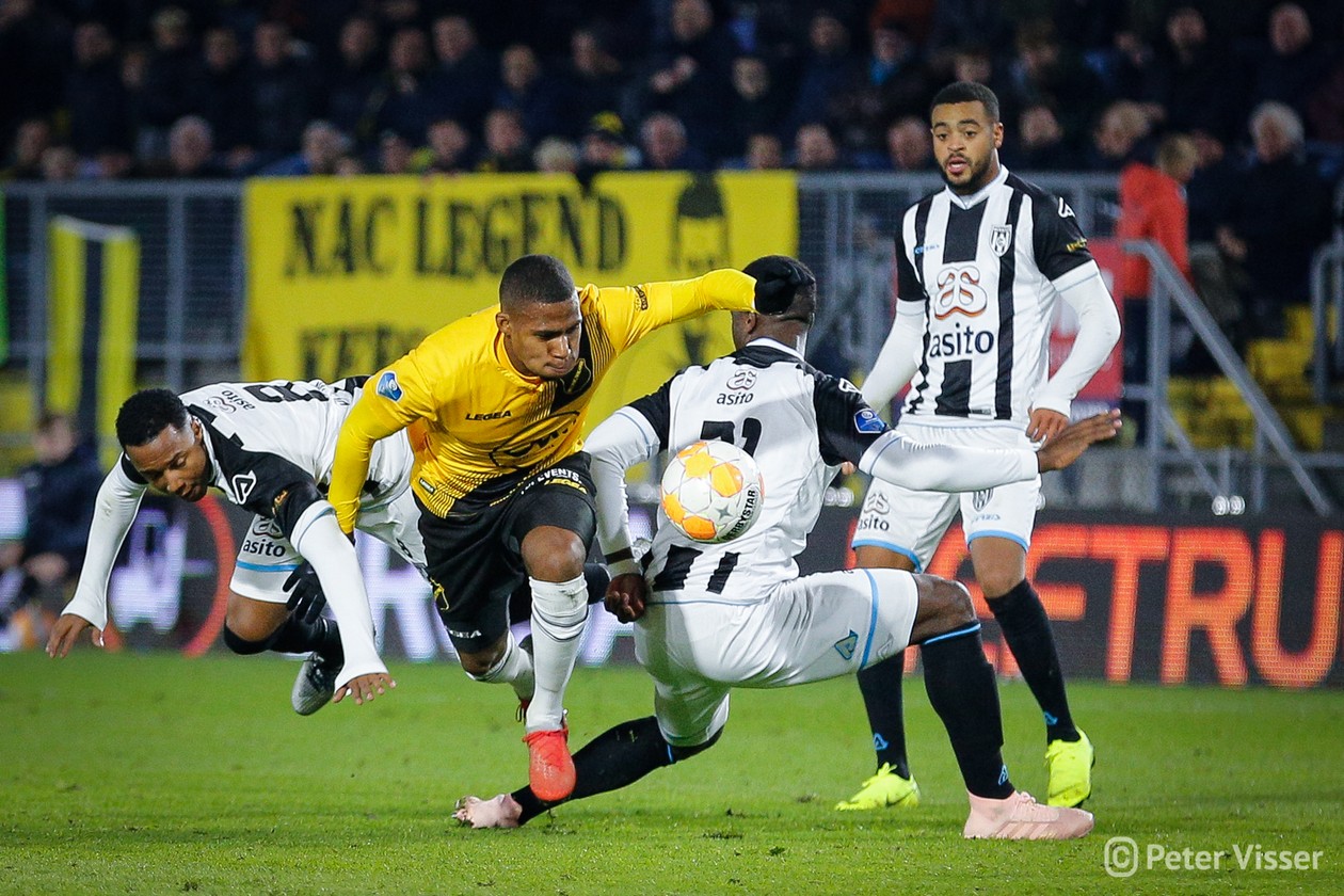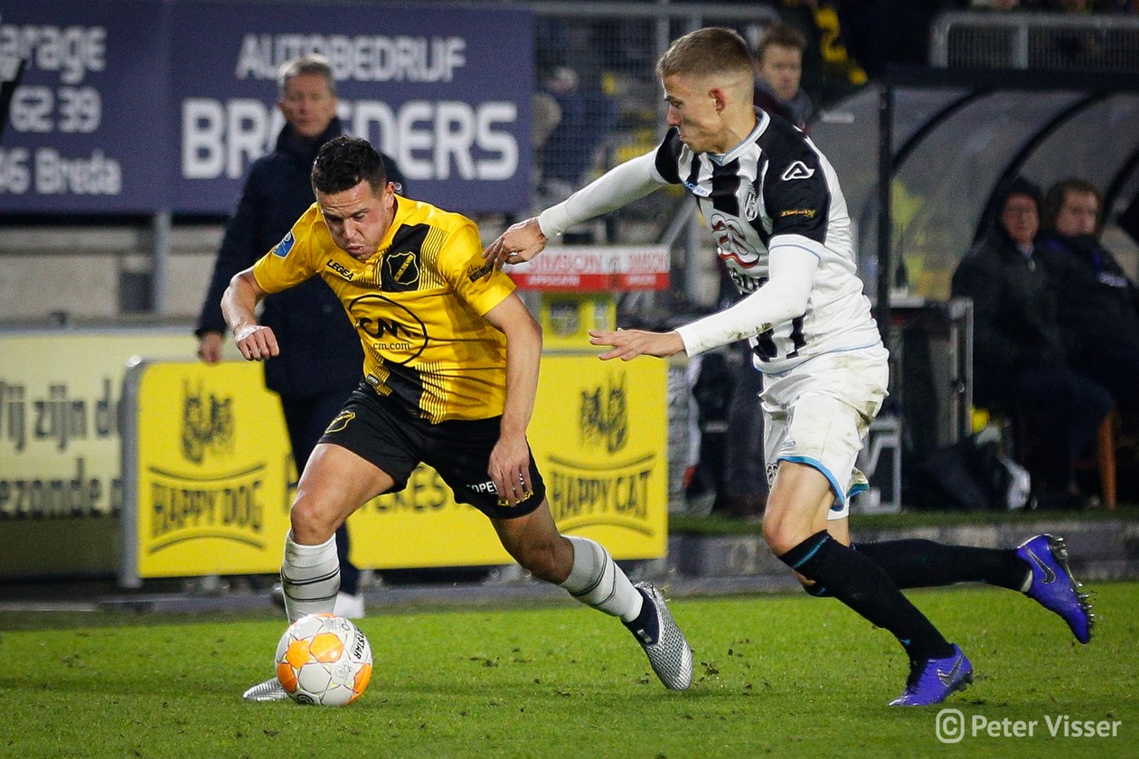 De tegenstander uit Almelo stond op een keurige 4e plaats dus NAC was gewaarschuwd. Slap beginnen zou al meteen de doodsteek kunnen zijn. Echt spectaculair was het begin eigenlijk niet. Heracles drong niet echt aan waar NAC (nog) niet bij machte was dit wel te doen. Een afstandsschot van Heracles in de 10e minuut was het eerste wapenfeit. De bal werd aangeraakt en vloog daardoor bijna in de kruising. Opluchting alom want een vroege achterstand zit je niet op te wachten. Gaandeweg werd NAC sterker en brutaler. Er kwam meer druk waarbij Heracles de bal een aantal maal tot corner moest verwerken. En één daarvan werd hen fataal. De sterk spelende Ilic kreeg de bal terug na zijn corner en begon aan een rush langs de achterlijn. Tot zijn grote verbazing mocht hij van de Heracles-verdediging zo doorlopen richting doel waarna hij de bal hard en laag kon inschieten. De voorsprong was daar! Na dit prachtige doelpunt kwam de wedstrijd tot leven. Gelukkig voor beide partijen was de VAR even koffie halen want zowel Osman als Kali hadden beiden rood kunnen krijgen na een gemene overtreding. NAC bleef ook na de openingstreffer aanvallend spelen. Tot grote kansen leidde dit zodat met een 1-0 voorsprong de kleedkamer werd opgezocht.