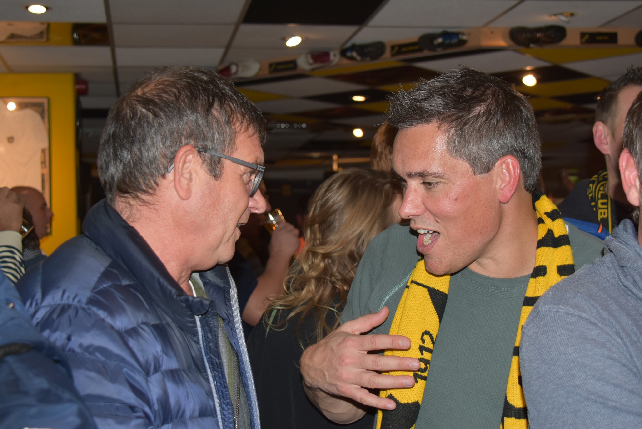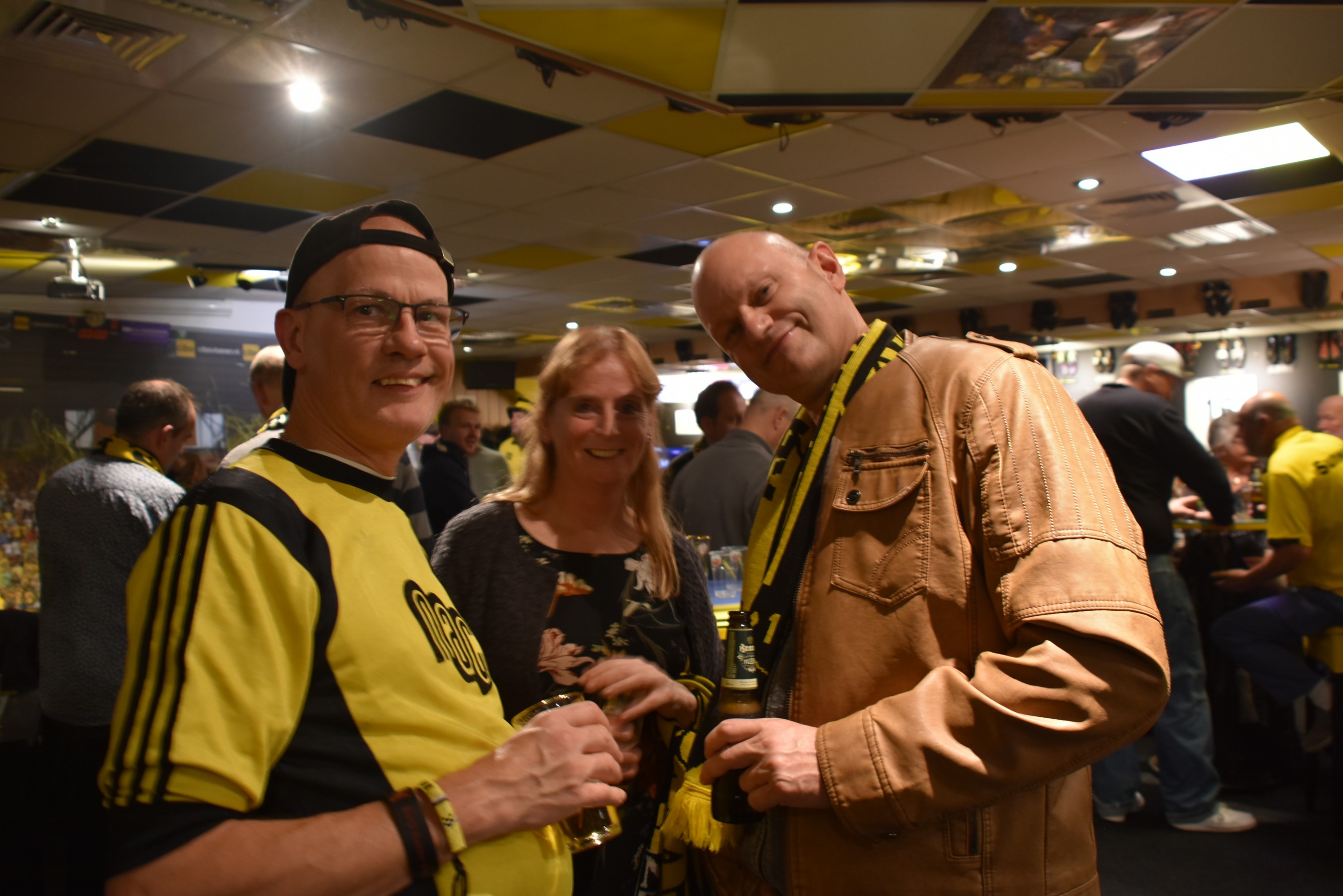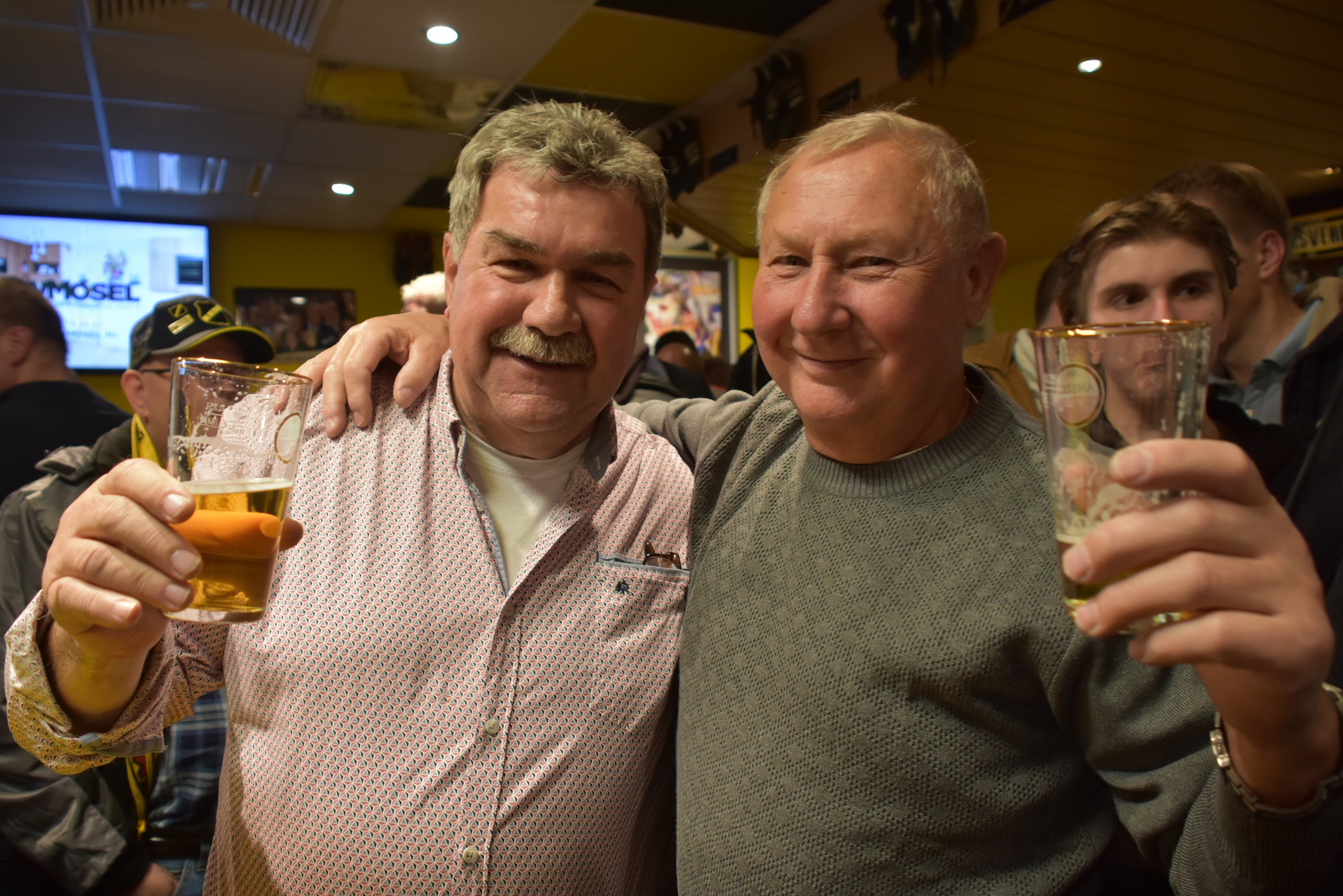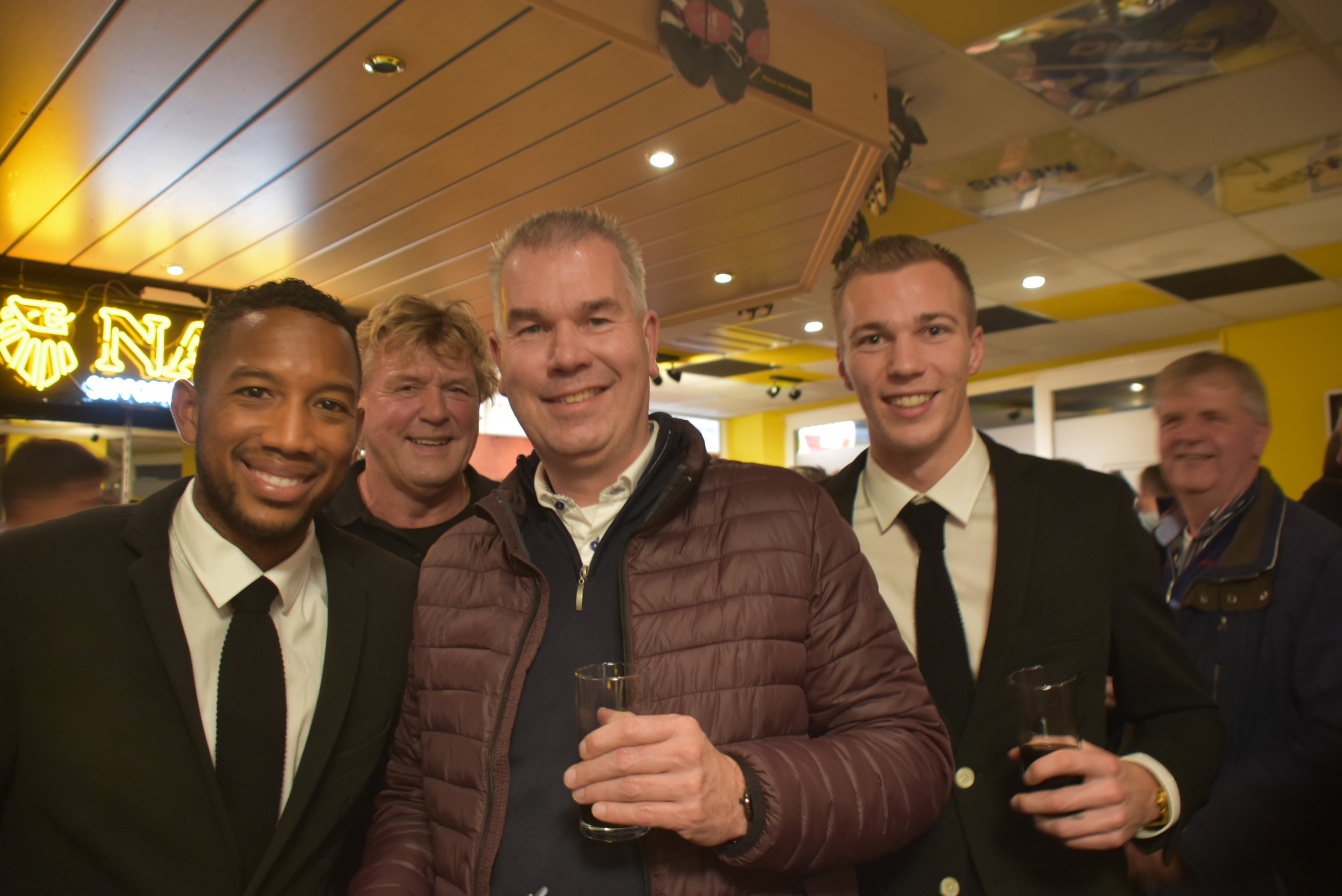 Druk en nog eens druk in ons supportershome. Iedereen was blij en opgelucht om de driepunter. De kelen werden gesmeerd en het bijna niet bij te houden. Ach ja ut mag ook wellus ! De spelers Fabian Sporkslede en Arno Verschueren waren te gast in ons home. Effe de loterij doen en dan gauw weer naar de biertjes. Dit motte we zo maar eens elke wedstrijd doen !