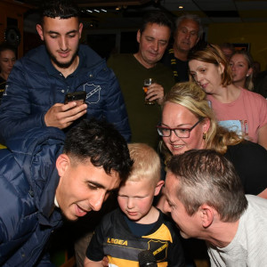 In het supportershome waren de spelers Yassine Azzagari en Sabir Agougil te gast. Na zo’n wedstrijd wordt de sfeer wel heel makkelijk gecreëerd. Dat moeten we erin houden. Ook Sjoerd Mossou kwam nog eventjes langs voor een biertje.
