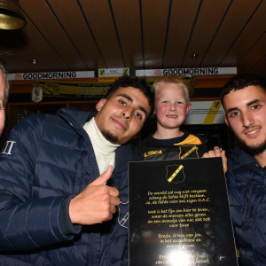 We gaan goede zakendoen, in de laatste officiële thuiswedstrijd van deze competitie, als we winnen van Top Oss. Eigenlijk gewoon een must, om uitzicht te blijven houden van spelen in de Play-offs. Vooraf de wedstrijd kwam Sydney van Hooijdonk nog even langs om alle NAC-Supporters te bedanken voor hun support tijdens zijn wedstrijden bij NAC. En dat deden de NAC-supporters ook terug door langdurig zijn naam te scanderen en te klappen.