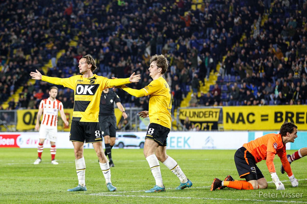 NAC moest gewoon vanaf het begin druk zetten op de verdediging van Top Oss om te zorgen dat deze wedstrijd winnend zou worden afgesloten. Het elftal was daar ook op aangepast. Hilterman verving Bannis en van Schuppen voor Azzagari. Deze aanvallende modus gaf een zichtbare boost in het elftal. Je kon dat zien doordat ze bleven werken om de bal te veroveren en voor de aanval te kiezen. Veel kansen gingen er net niet in, maar het kan ook niet uitblijven verwachtten dus veel supporters. Kaj de Rooij begon aan een rush en werd in de zestien onderuitgehaald. Welat Cagro legde de bal op de stip en knalde deze in de touwen. De voorsprong was een feit nu nog uitbouwen. Lang hoefden we niet te wachten. Door een snelle combinatie tussen Ody Velanas en Boris van Schuppen kwam Boris in een ideale schietpositie en schoot de bal in de verre hoek. Olij was weer een redder in nood door zich voor het schot van Tejan te gooien, om te zorgen dat een aansluitingstreffer geen kans had.