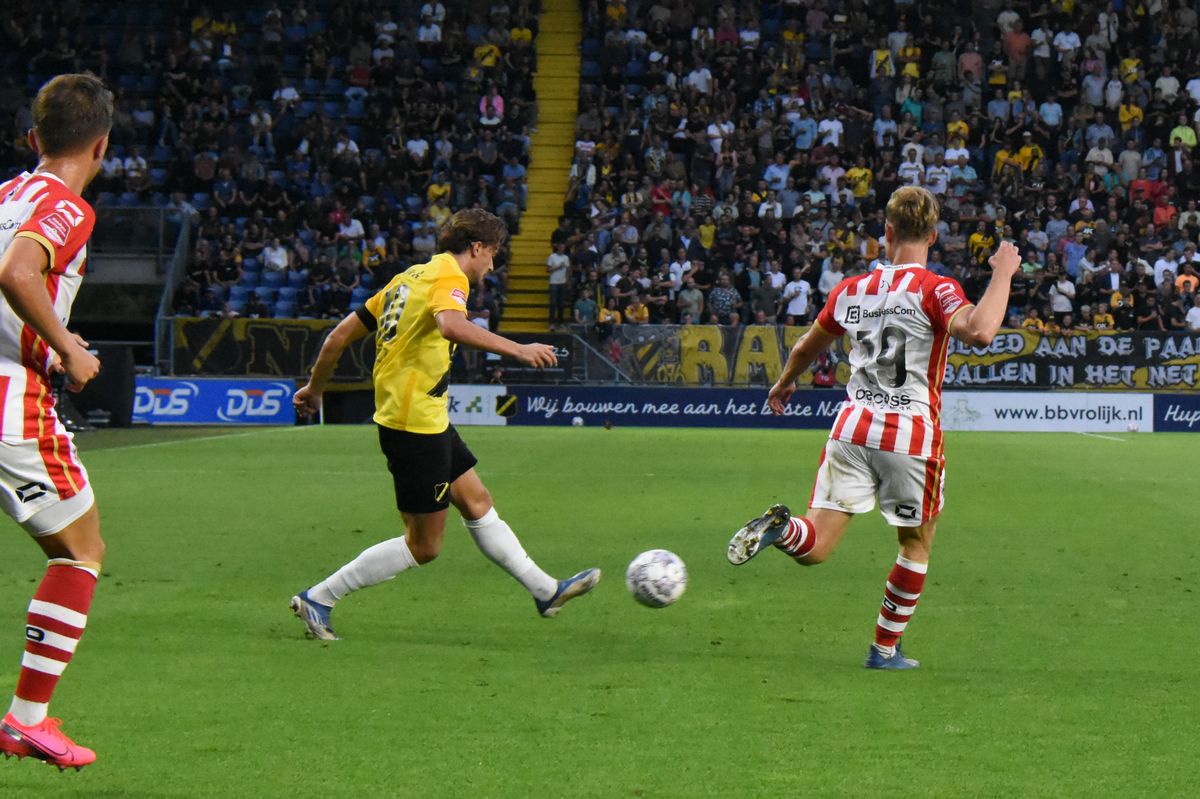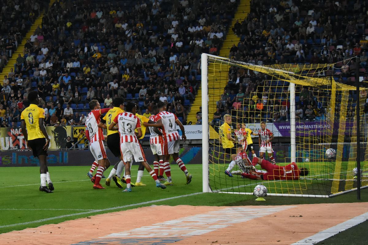 Er was 1 wijziging ten opzichte van de opstelling tegen MVV. Kaj de Rooij kwam terug vanuit een schorsing. De Rooij speelde verdienstelijk en zorgde voor gevaar, waar de keeper van MVV veel moeite mee had. Het ging heen en weer het spel, maar leiden niet direct tot grote kansen. Een vrije trap buiten de zestien en een metertje van de achterlijn van MVV werd door Ody Velanas in de korte hoek geschoten. NAC wilde doorstoten naar een hoge voorsprong maar het geluk zat niet mee.